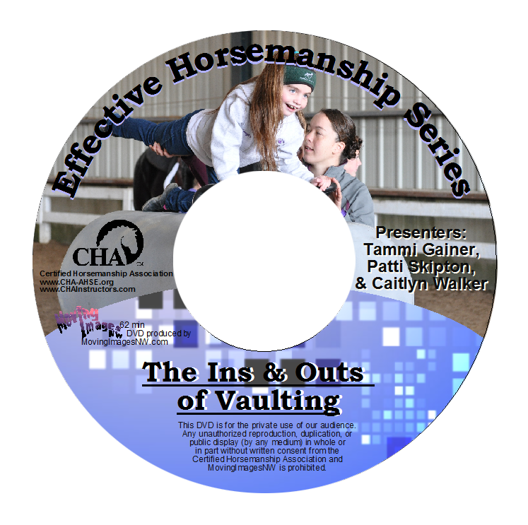 This hands-on workshop addresses the sport of vaulting from the first basic steps to competition. Together, the presenters bring to the “barrel” varied backgrounds of how vaulting can be incorporated into a wide variety of programs. Topics such as equipment needs and use, training the vaulting horse and the vaulting student will be addressed. Presented by Tammi Gainer, Patti Skipton, and Caitlyn Walker. Running time 62 min.