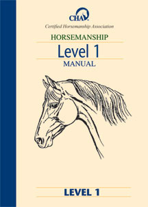 Level 1 Horse sense, rules for safe riding, parts of the horse and tack, approaching, leading, grooming, saddling and bridling, mounting and dismounting, basic seat and hand position, basic aids and horse control, circles and reverses, beginning the trot, exercises on horseback, elementary trail riding. 43 Pages